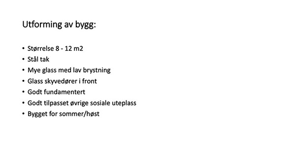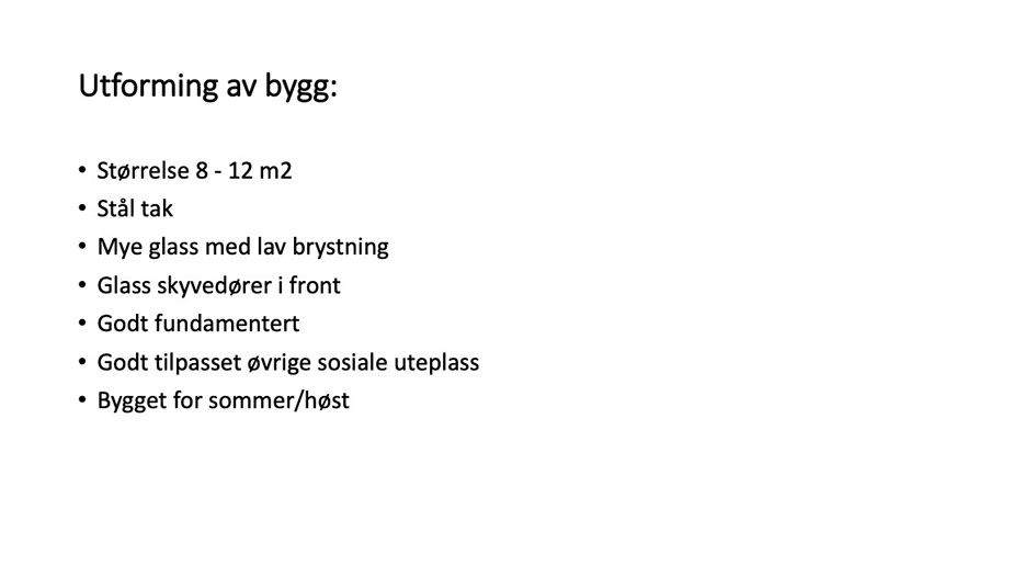 Det ble et klart flertall for å plassere den inntil garasjeveggen, der det hvite møbelementet vanligvis står. Dette er da også styrets innstilling, og arbeidet starter i januar med å få godkjent prosjektet i kommunen, og vi regner med at hagestua er på plass utpå våren en gang...